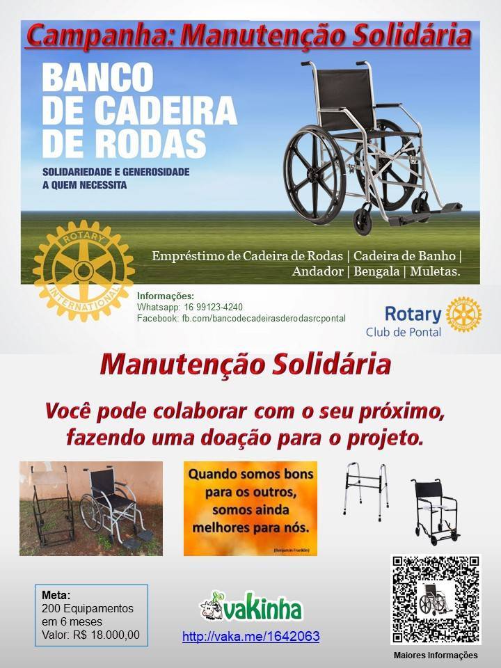 O Banco de Cadeiras de Rodas é um Projeto do Rotary Club de Pontal, com diversos equipamentos emprestados e/ou doados ao longo de 28 anos.