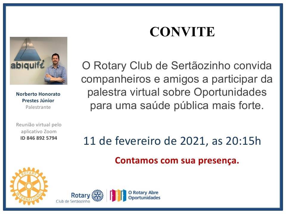 Rotary Club de Sertãozinho - Palestra: "Oportunidades para uma Saúde Pública mais Forte"