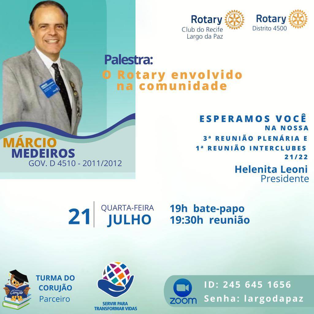 *Os Companheiros do Rotary Club de Recife-Largo da Paz, estão convidando você para uma reunião, Conjunta em parceria com os *Membros da Turma do Corujão.*
