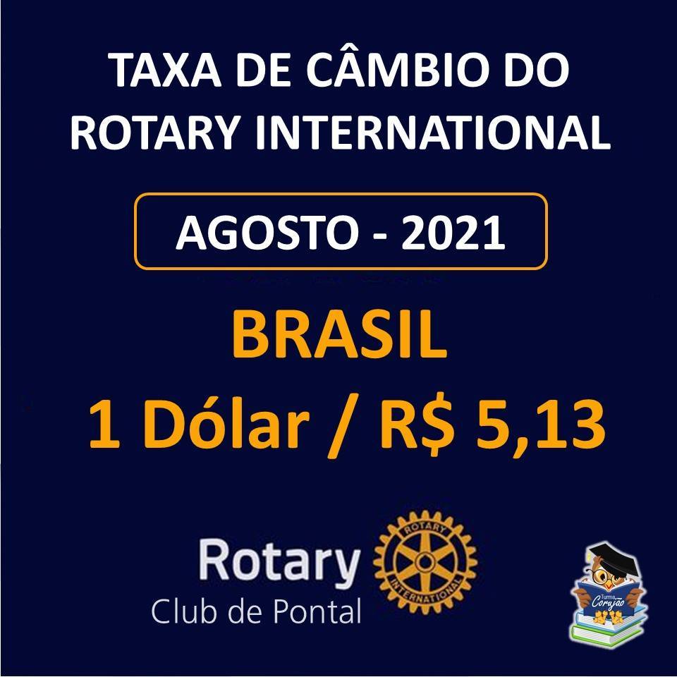 TAXAS DE CÂMBIO DO ROTARY INTERNATIONAL - Agosto 2021