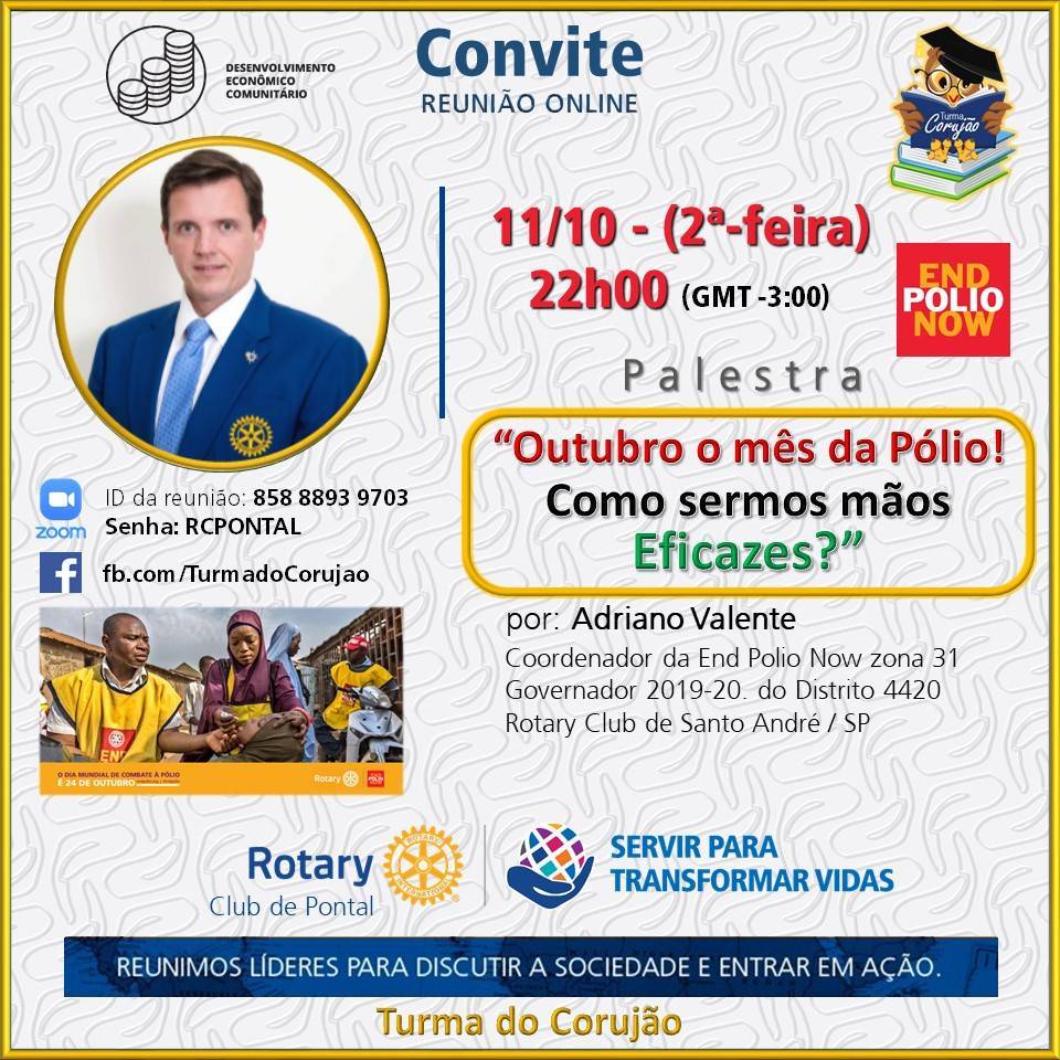 *Palestra:* “Outubro o mês da Pólio! Como sermos mãos eficazes?”