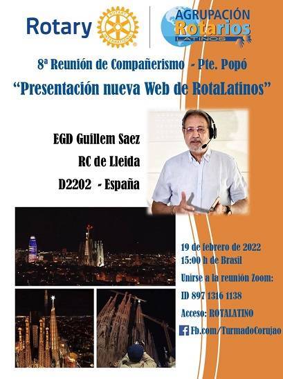 *Invito a los queridos amigos de Rotalatinos* a participar neste sábado, 19/02/2022 en nuestro 8er Encuentro de Compañerismo!! Cuento con la participación de todos !!!