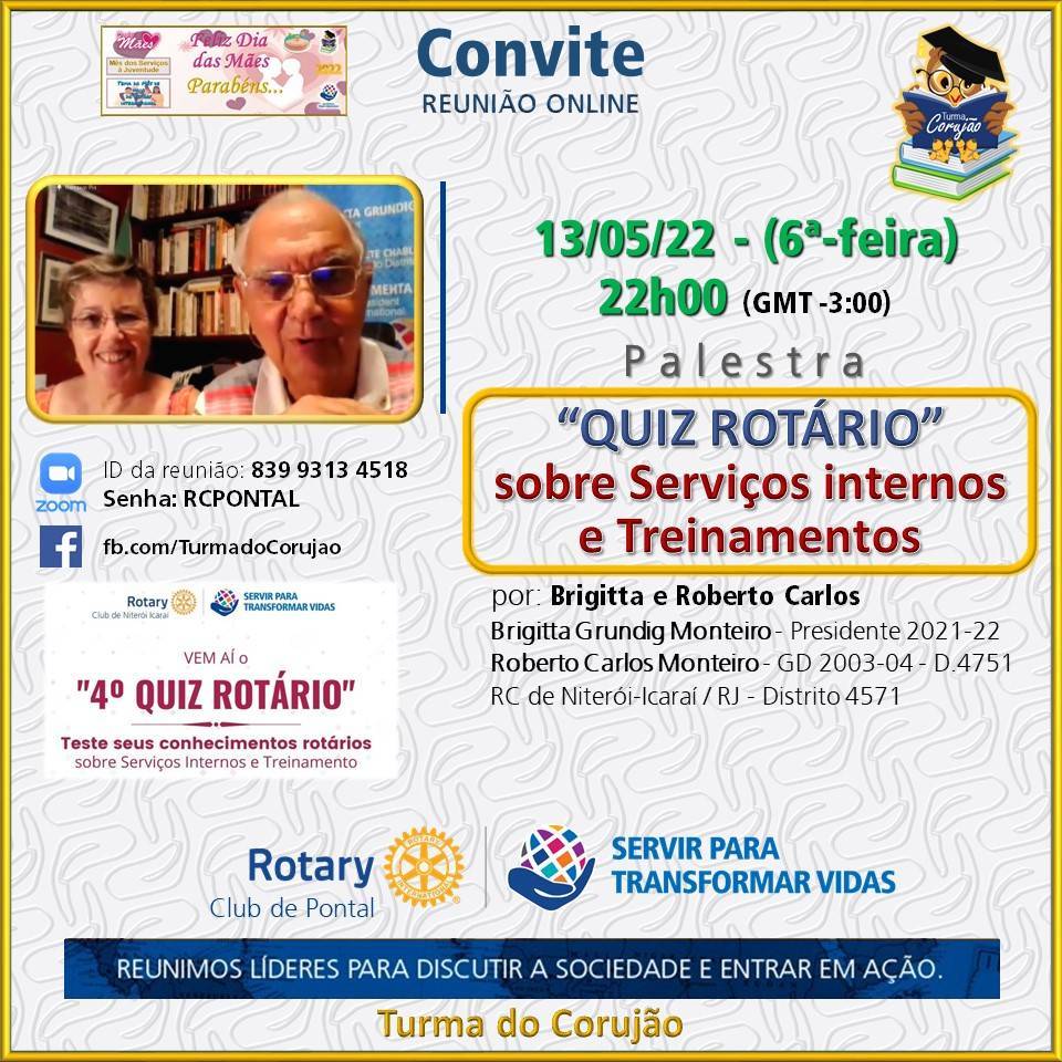 *Palestra:* “QUIZ ROTÁRIO - sobre Serviços Internos e Treinamento!”